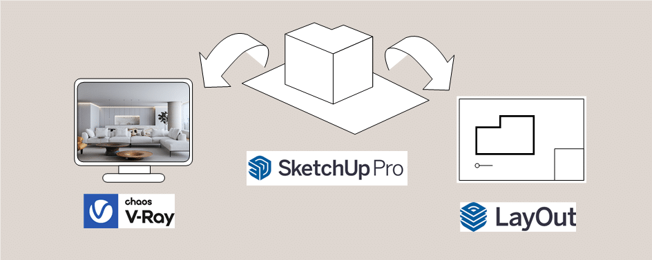 ✔️ Pra quem quer ganhar tempo e aumentar a produtividade com o modelo do Sketchup se transformando em renderizações com o V-Ray e também em desenhos executivos com o Layout.