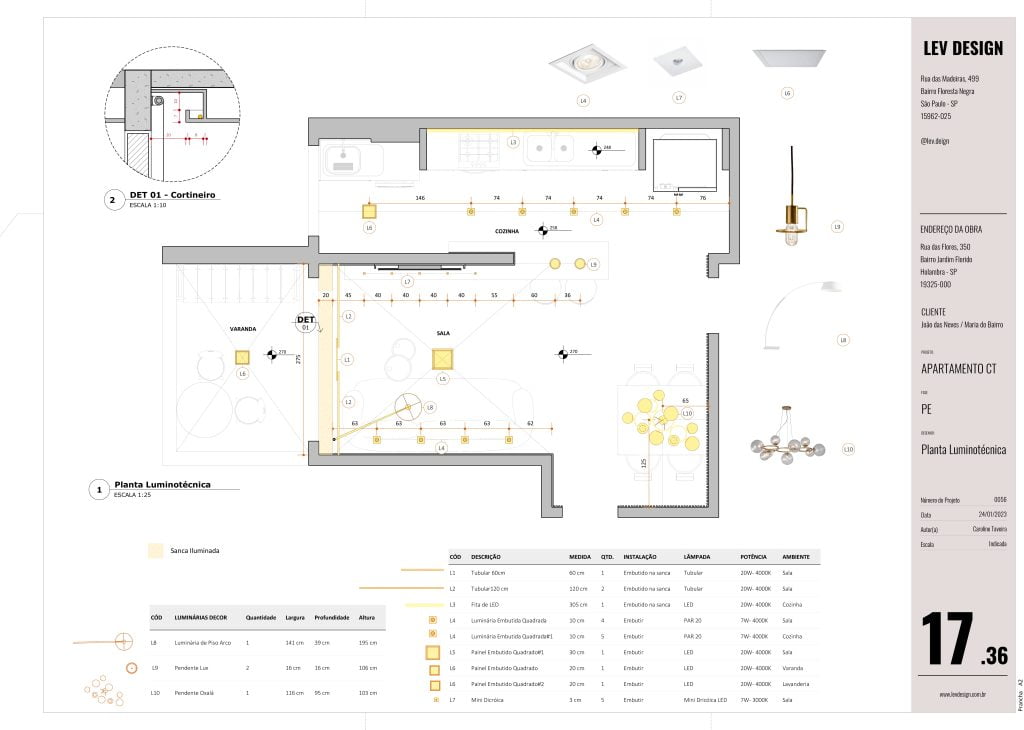 Adicione Luminárias que recortam automaticamente seu gesso e estão prontas para se transformar em quantitativos detalhados. Além de blocos guia para distribuir e formatar a iluminação do seu projeto.